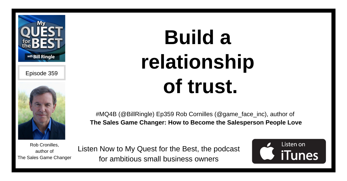 Build a relationship of trust. Rob Cornilles (@game_face_inc) shares on My Quest for the Best, the podcast for ambitious small business leaders.#MQ4B https://myquestforthebest.com/