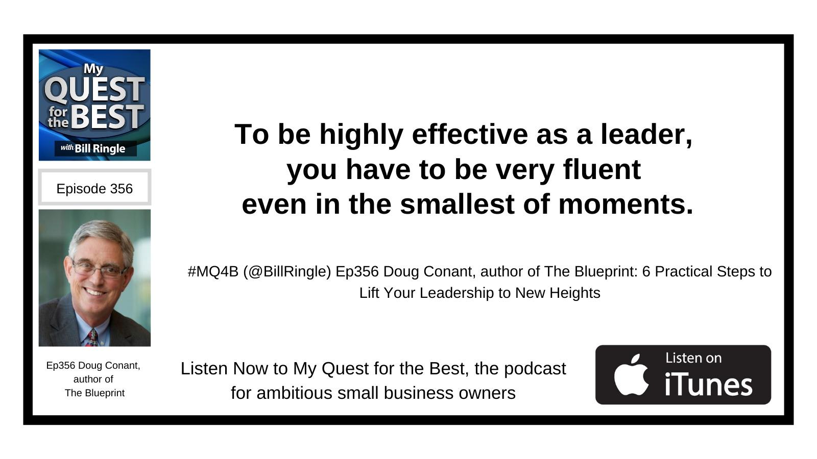 Ep356 is a Top 20 for 2021! 🎉 To be highly effective as a leader, you have to be very fluent even in the smallest moments. @DougConant shares on My Quest for the Best, the podcast for ambitious small business leaders. #MQ4B https://myquestforthebest.com/