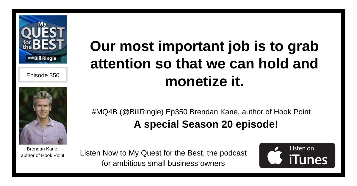Our most important job is to grab attention so that we can hold and monetize it. Brendan Kane shares on My Quest for the Best, the podcast for ambitious small business leaders.#MQ4B https://myquestforthebest.com/