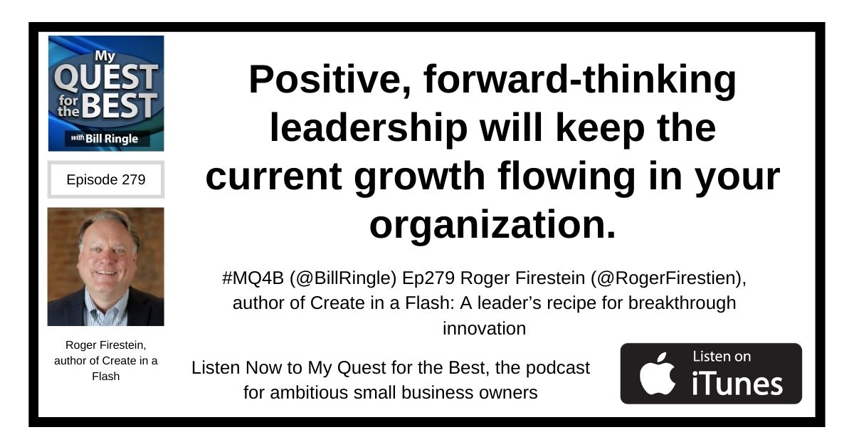 Positive, forward-thinking leadership will keep the current growth flowing in your organization. @RogerFirestien shares on #MQ4B Ep279 My Quest for the Best, the podcast for ambitious small business leaders. https://myquestforthebest.com/279Listen in: https://myquestforthebest.com/itunes Subscribe on iTunes or your favorite podcast app.