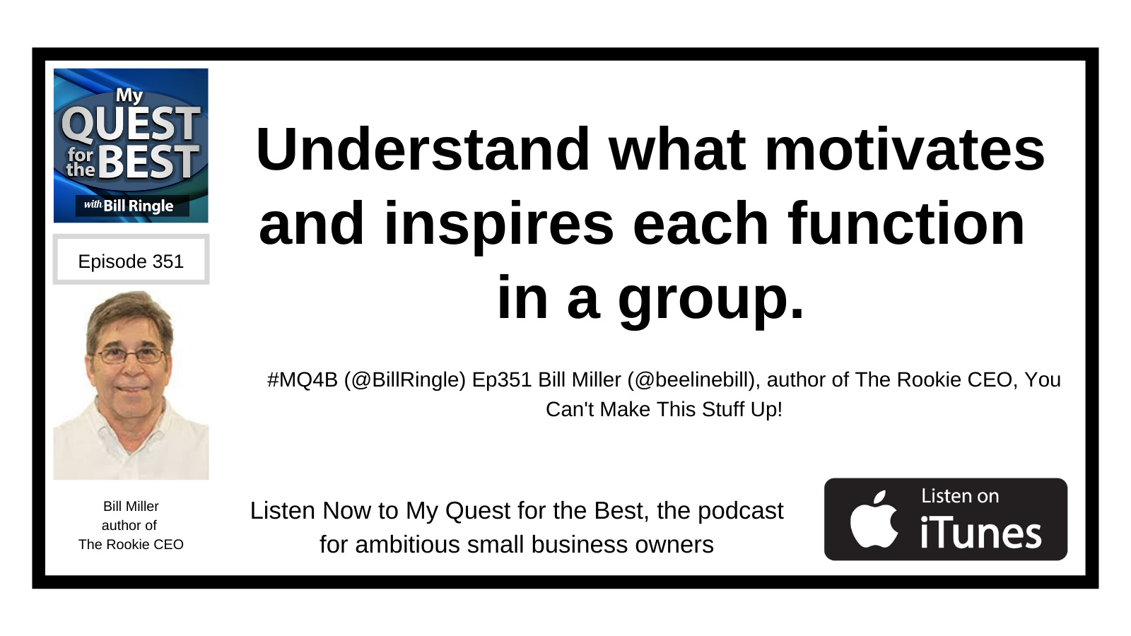 Understand what motivates each function in a group. Bill Miller (@beelinebill) shares on My Quest for the Best, the podcast for ambitious small business leaders.#MQ4B https://myquestforthebest.com/